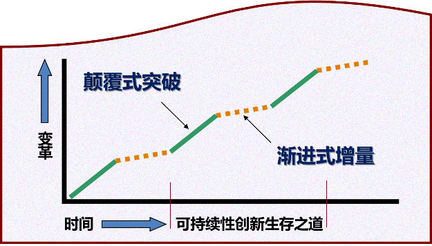 # 00 创新,是为了解决实际问题和/或实现某个机会,通过用新的、更好的、不一样的方式创造出正效益。 谈及“创新”,太熟悉了!熟悉到可能都觉得有些腻了,因为到处都在号召创新:“创新是第一动力”、“增强自主创新能力”、“强化企业科技创新主体地位”、“着力造就拔尖创新人才”…… 展现出一个从现在到未来发展的主旋律——推动自主创新。 然而创新并非易事。事实是,在创新道路上所遇到的障碍和艰辛往往会使人们望而却步。 # 01 创新是什么?那么究竟该如何定义“创新”呢? 创新是为了解决实际问题和/或实现某个机会,通过用新的、更好的、不一样的方式创造出正效益。 在这个定义里最难理解的应该是“正效益”这三个字,因为很多创新的成果并不能立即带来效益,更多的甚至还具有一定程度的破坏性。比如,20多年前电子商务曾被视为“商业欺诈”(骗子)的工具,传统零售业更是认为“这怎么可能?!”谁会对吃的、用的、穿的等商品在没见到实物展示或试用的情况下,就在网上点击购买呢? 但是,从这种破坏性(或者失败)结果中我们难道没有获得新知识新技术吗?这些获得难道不是另一种形式的正效益?于是,我把是否创造出“正效益”归于人在战略层面上的差异比较后的价值判定。在同一个创新成果的价值评判上,有的人认为它是没有价值的,甚至认为是一个失败的结果,而有的人则认为它价值连城,是一个颠覆性突破的成果,它让我们看到“未来已来”。 # 02 创新中人的重要性2007年,当许多人看到地铁口的有桩公共单车(需要用交通卡注册认证并刷卡支付,且必须在同样的停车桩上归还等一系列复杂流程)的时候,就报以轻蔑的一笑,“脑残的人才从一个地铁口骑车到另一个地铁口呢!最起码还得有空桩才能完成还车结算啊!还有……”。 可就在7年后的2014年,也是这些人骑着戴威的ofo、胡玮炜的摩拜共享单车满大街乱窜,素质差的还乱停乱放(笔者还看到过把车停在树上的照片)。因此,从创新的这个定义中我们就能看出创新的主体 —— 人在创新道路上的重要性。 “我们将创新视为一种旅程,从设立一个意图、目的或目标开始,最后以产生创新成果及收获新知识结束。在整个旅程中,以下三个方面均不可或缺: ①创造性意识 (Creative Consciousness)和 创新思维 (Innovative-thinking); ②新知识的学习 (Learning & Knowledge); ③人的价值观 (Human Values)及 良好积极的品格(Positive Qualities of Good Character)。” 2016年5月,当我在美国丹佛参加了由ATD(Association for Talent Development)举办的人才发展大会上见到原斯坦福大学国际研究所创新实验室第一代负责人,现“以价值为中心创新赋能服务机构”(Value Centered Innovation Enablement Services)的创始人威廉姆 C. 米勒(William C. Miller)先生时,就被他以上这句话所深深吸引。因为从这句话里我看到了米勒先生把人的相关因素,即人的意识、思维、价值观、品格以及学习新知识的能力作为创新旅程中不可或缺的关键要素加以着重强调,这与我前文中所提的“创新道路上人的重要性”不谋而合。于是,我当下就决定把他的研究成果引入到中国,为中国企业在人才发展的领域中注入引领创新、鼓励、支持创新以及培养创新能力的新元素。 # 03 创新的两种变革结果创新可以导致两种不同程度的变革结果:颠覆式突破和渐进式增量。两者都是可持续性创新不可或缺的部分。 毋庸置疑,任何企业都会鼓励并支持不断地带来渐进式增量的创新活动,因为这完全符合企业为了满足其客户不断增进的需求和企业自身追求永续的、不间断的增长的要求。 然而,面对颠覆式的突破,企业往往会表现出“左右摇摆”“犹豫不决”甚至是“扼杀于摇篮”的态度,可谓又爱又怕,爱它可能给企业带来一个全新的、领先于市场的局面;怕的则是它所带来的风险,可能有悖于董事会的决策和股市的要求(是否能够带来最佳收益率的结果)。 有研究结果表明,越是管理良好的领先企业越是会认真研究市场趋势,聆听客户的声音,积极地、并将投资资本系统地分配给了能够带来最佳收益率的领域,如新技术研发,以期向客户提供更多更好的产品。可最终带给这些企业的结局是失去其市场领先地位(如果您感兴趣,可参阅Clayton M. Christensen的著作《创新者的窘境》一书。) 苹果公司发展道路上所发生的有趣故事就很能说明以上的问题,大家应该记得史蒂夫·乔布斯曾经用那句著名的话:“你到底是想一辈子卖糖水呢,还是和我一起改变世界?”激将了原百事可乐总裁约翰·斯卡利,把他激进了苹果公司当总裁,两人在经过一段“蜜月期”后,终于在麦金塔电脑(iMac的前身)的定价等事情上出现了严重的冲突,斯卡利要利润,乔布斯要创新,结果大家都知道,创始人之一的乔布斯却被董事会“踢出了”公司,可是优秀的管理者斯卡利之后却把苹果带向了濒临破产的边缘,1997年董事会不得不再把乔布斯请回来,才挽救了一切!乔布斯还把苹果带到了全球最有价值公司的巅峰地位。 # 04 企业可持续创新的生存之道在当前VUCA时代的商业环境下,仅靠渐进式的增量无法确保企业的生存,颠覆式的突破同样没有较高的保险系数,因此两者必须相辅相成、缺一不可,这可能会成为企业赖以生存发展的法则(图一)。关键是我们又该如何做到两者的结合呢?